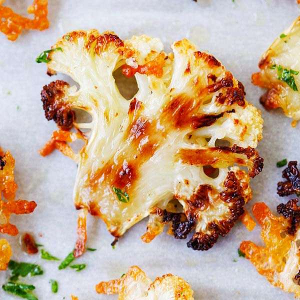 Easy roasted cauliflower with Parmesan cheese is one of the best cauliflower recipes. Cauliflower is cheesy, buttery with simple ingredients. This recipe takes 10 mins active time!