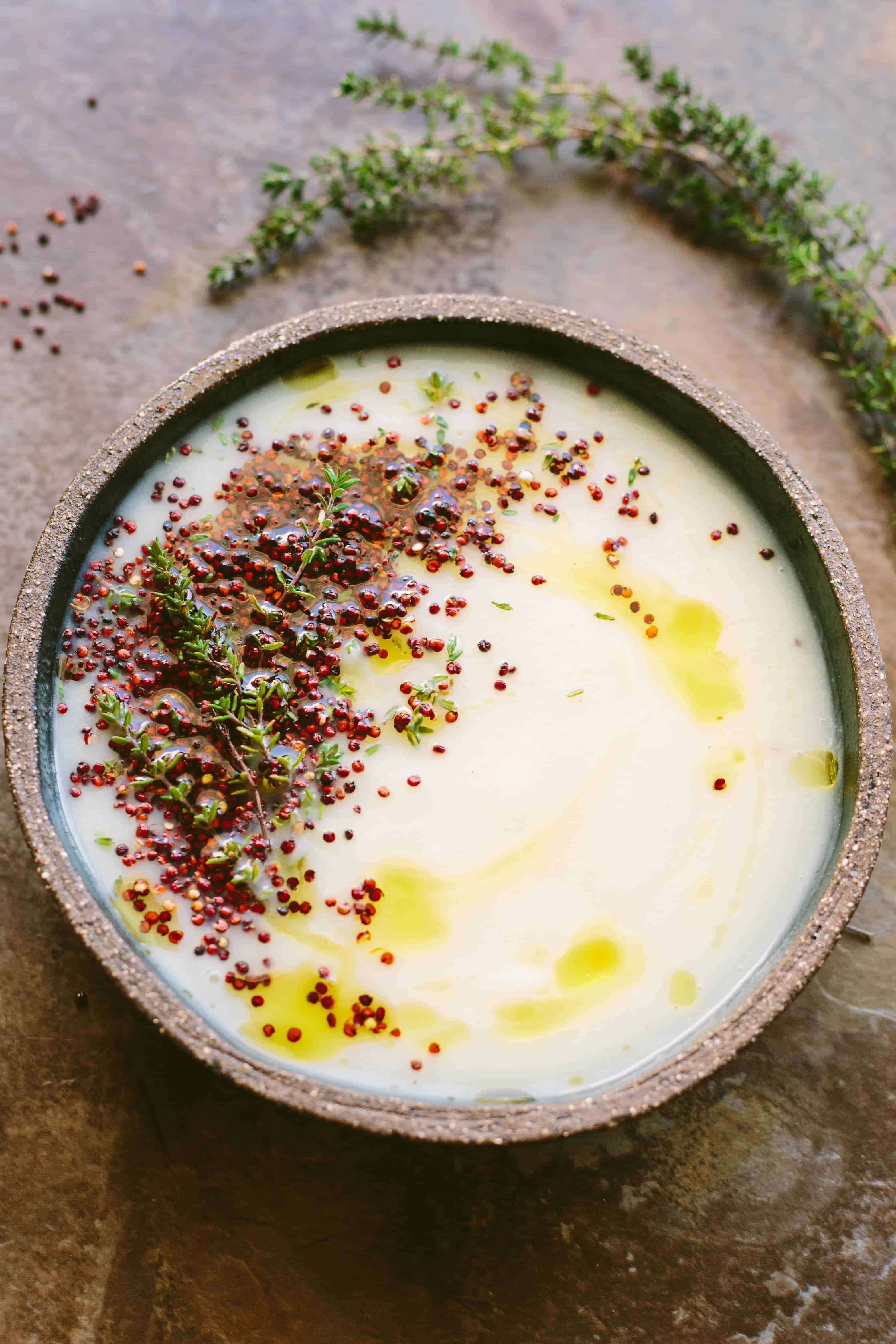 Parsnip Cauliflower Soup with Puffed Quinoa (Video!)