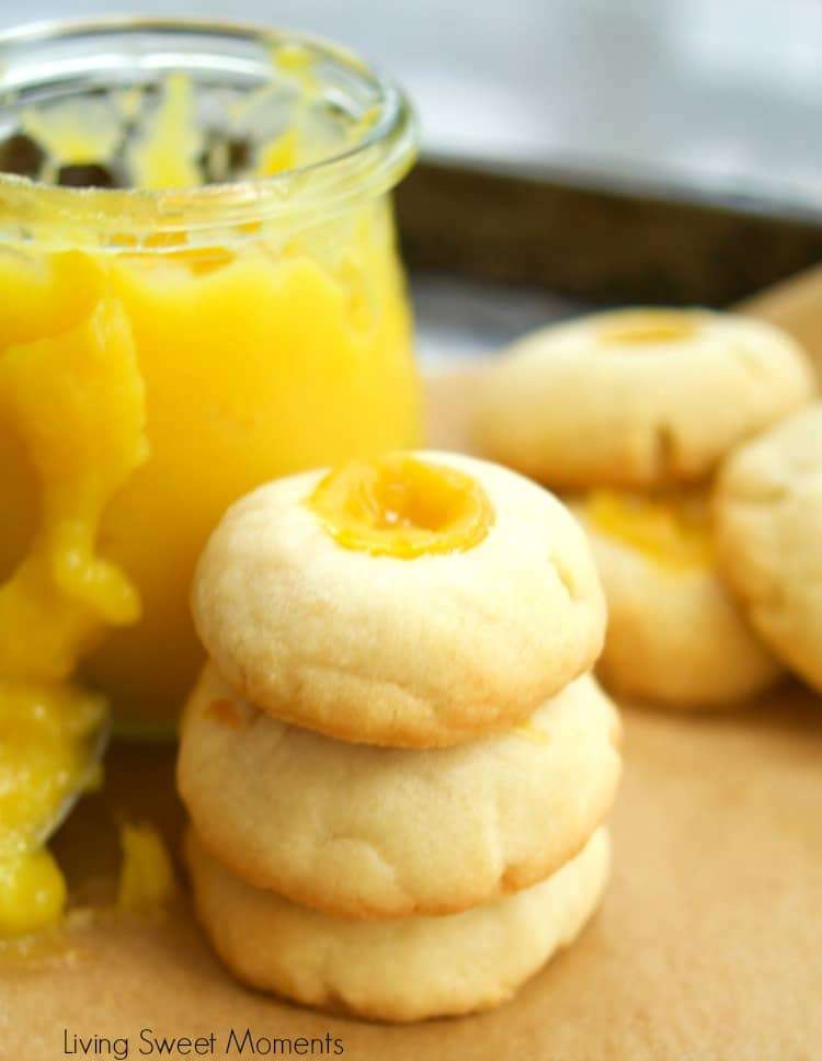 This delicious thumbprint cookie recipe is made with homemade passion fruit curd in a shortbread cookie dough. Perfect for dessert and tea. Yummy!
