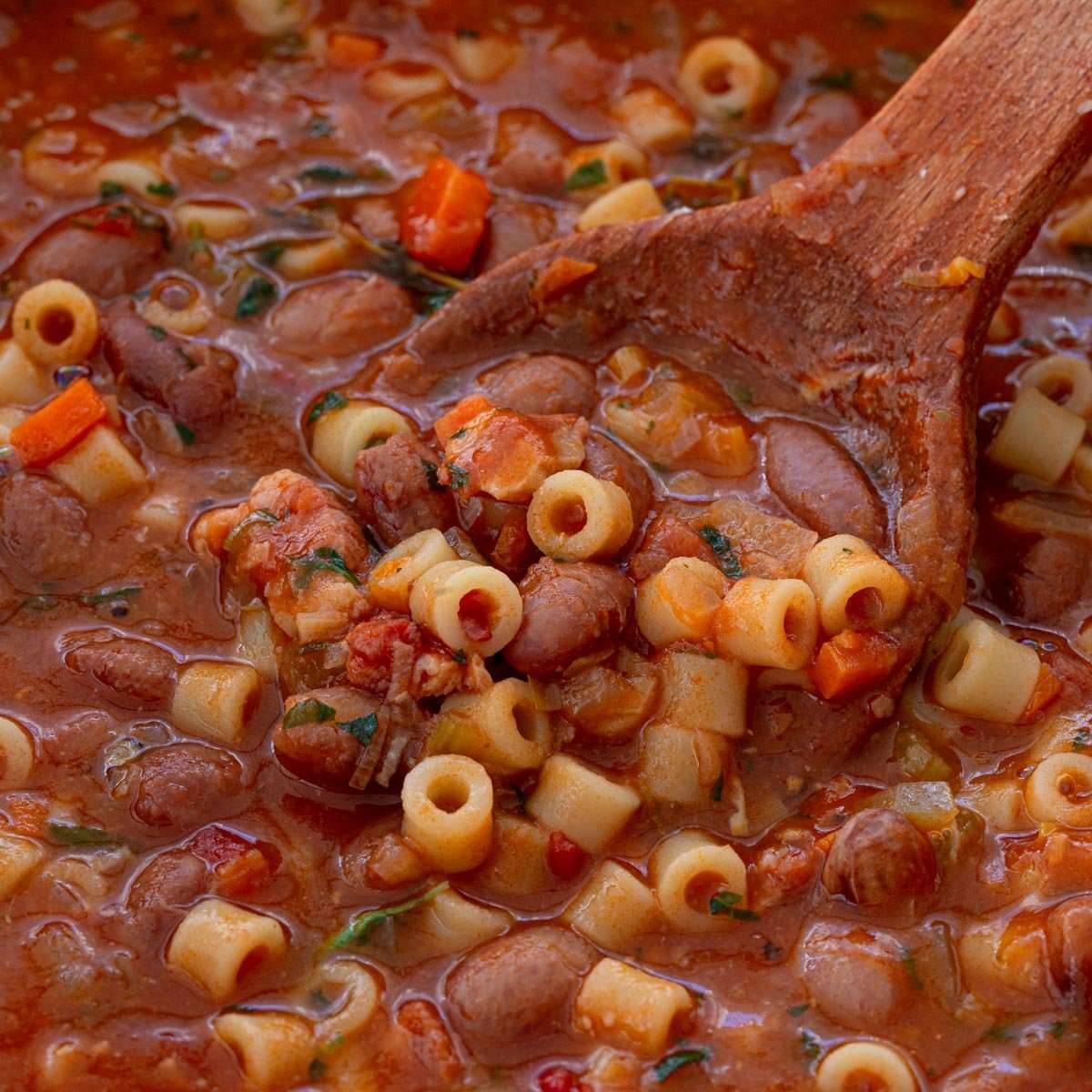 A classic Italian soup, Pasta e Fagioli is a satisfying dish that will warm your body and your soul! Pasta, beans, pancetta and veggies are embraced by a flavorful tomato broth, making this soup a meal in itself.
