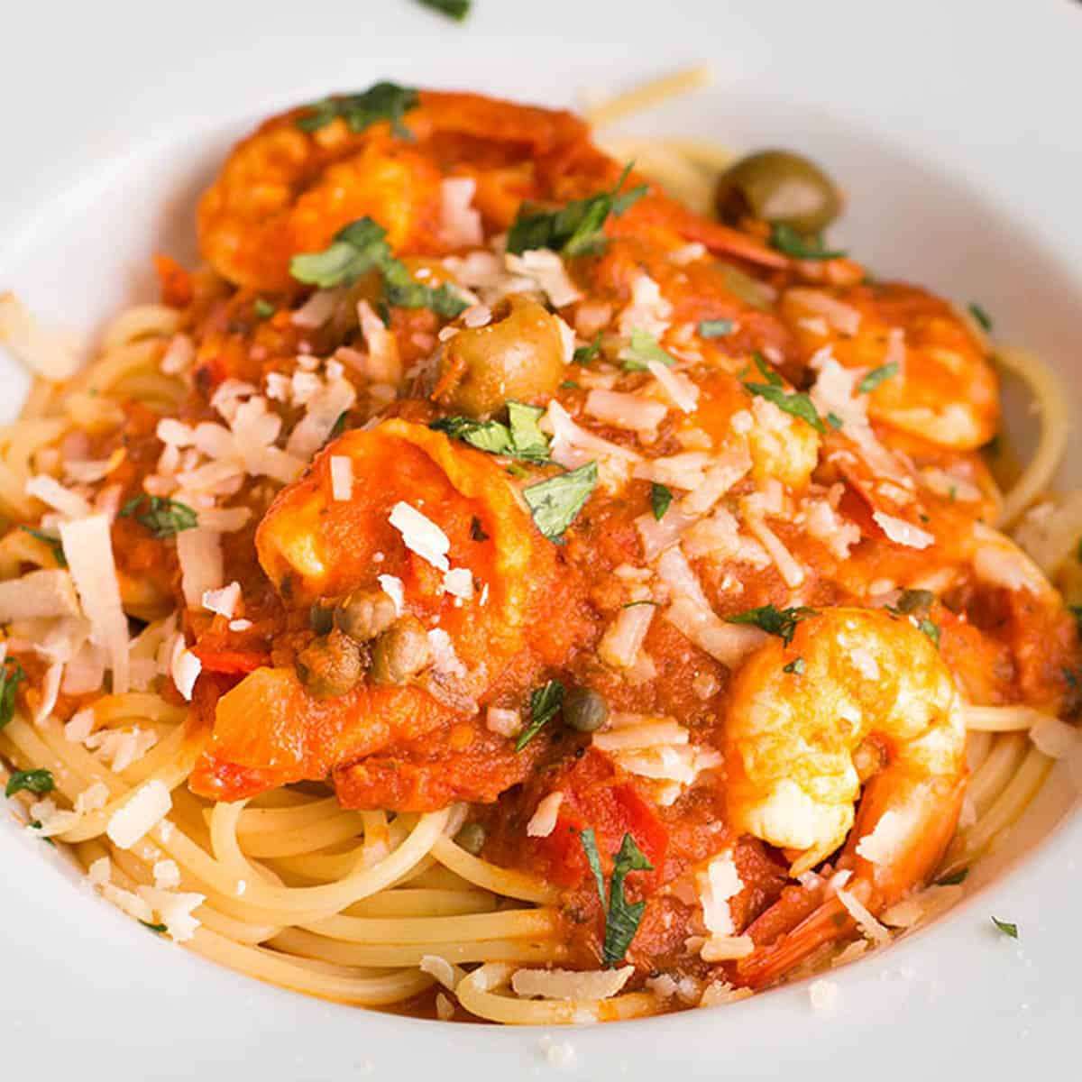 Pasta Puttanesca Recipe with Shrimp