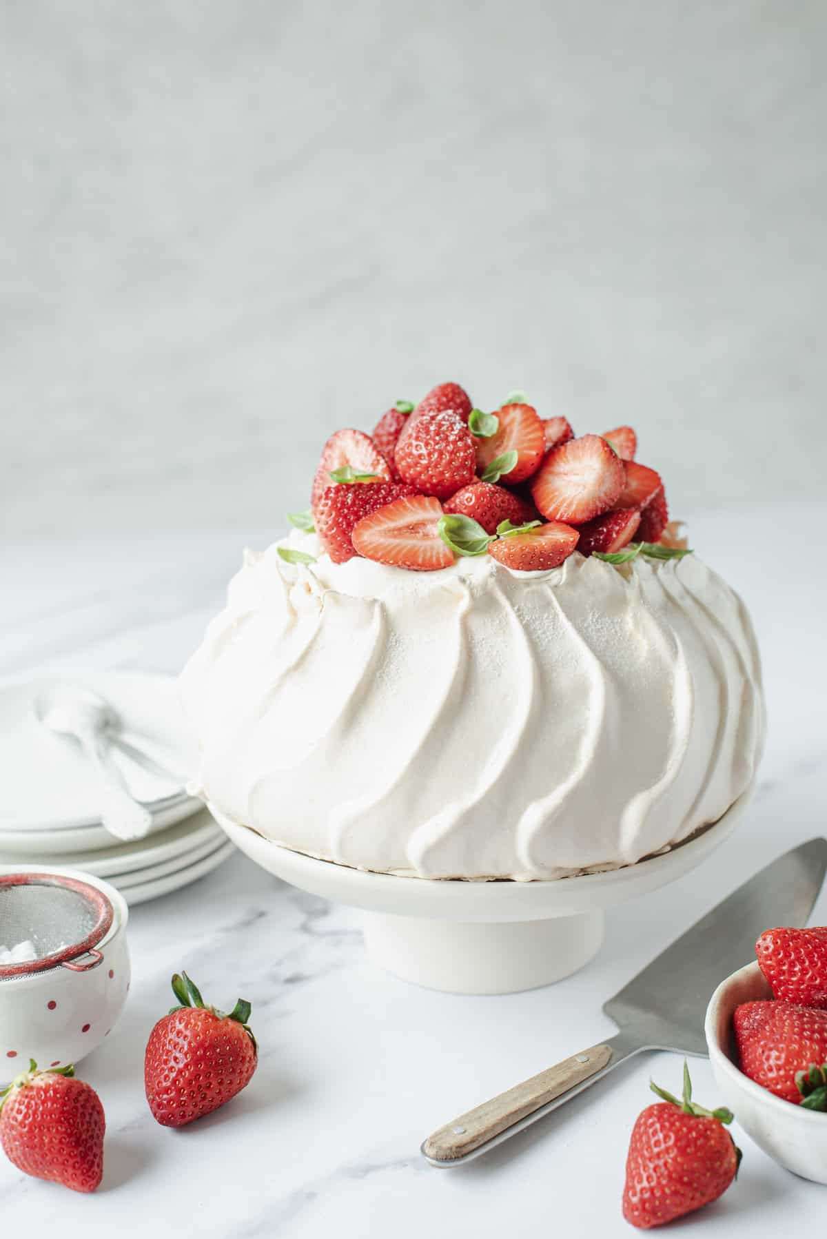 - Bake for 1 hour and 30 minutes, then turn off the oven and let the pavlova cool completely inside.