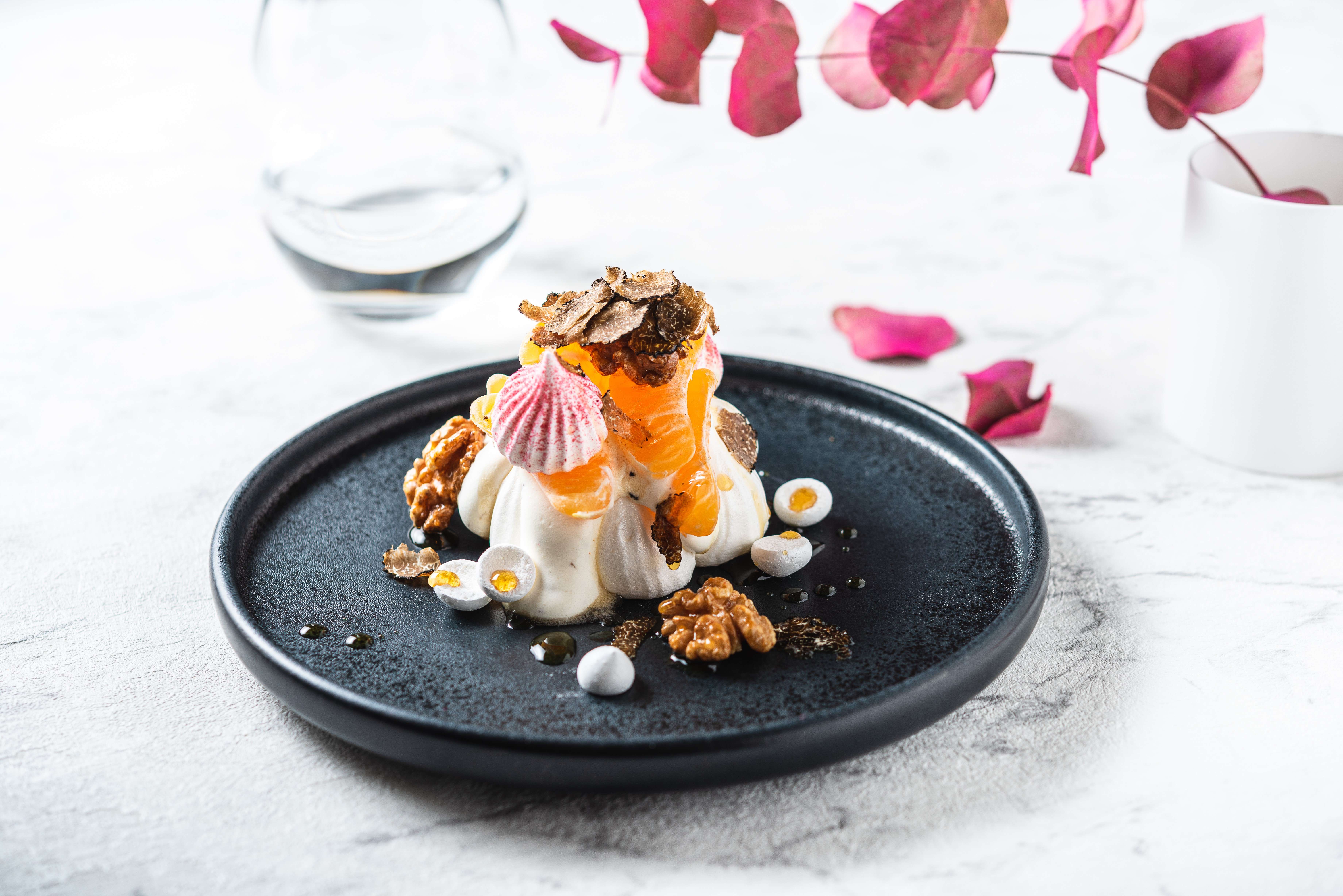 - In the end you can sprinkle crushed meringue on top and sliced black truffle