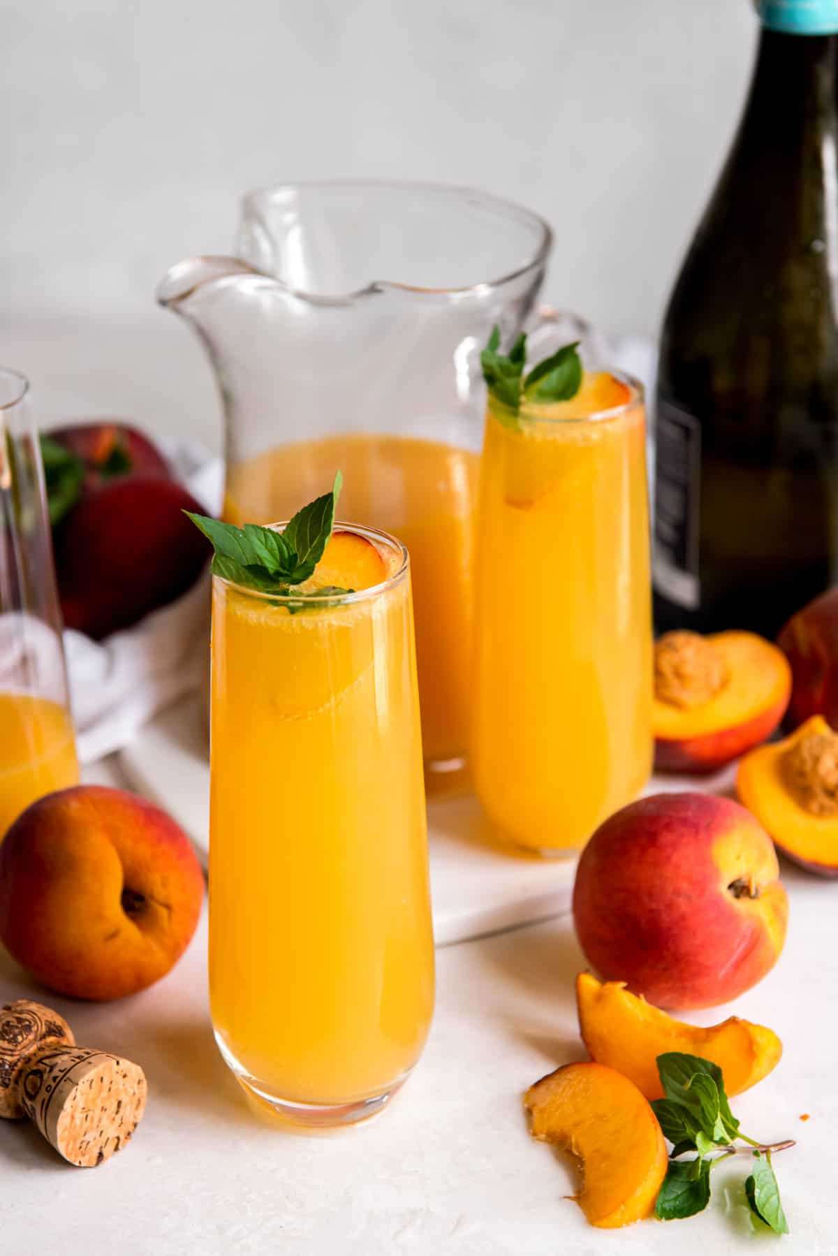 - To make ahead: The peach and orange juice mixture can be made up to 24 hours in advance. Simply store it in a pitcher or jar in the fridge until you're ready to use it.