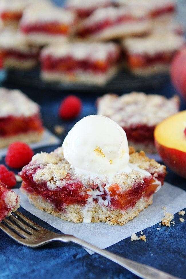 These easy crumb bars are the perfect dessert for summer potlucks and picnics! Serve with a scoop of vanilla ice cream for an extra special treat!