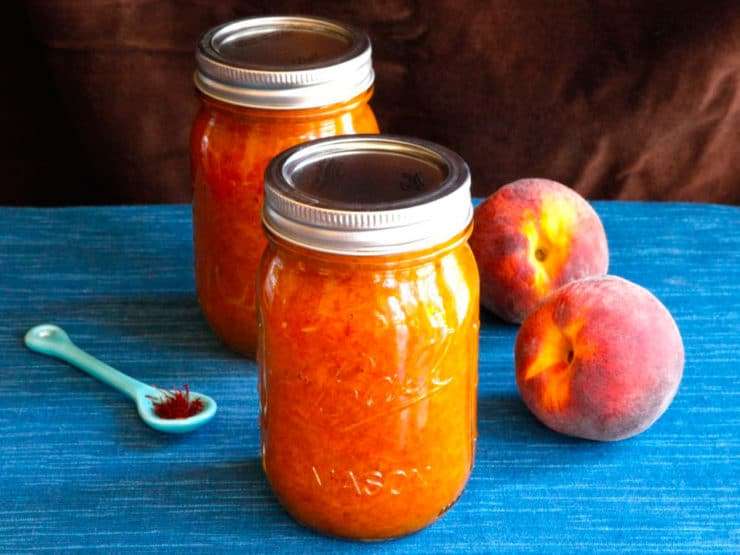 Step-by-step recipe for creating peach preserves with exotic saffron and a hint of cinnamon.