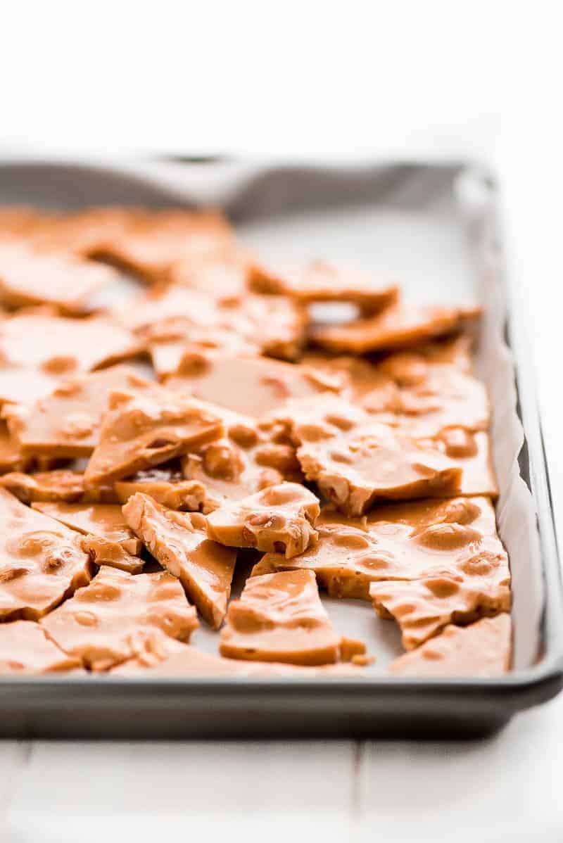 Peanut Brittle is a classic buttery and crunchy candy that no one will be able to resist munching on. It’s perfect for packaging and giving away during the holidays.