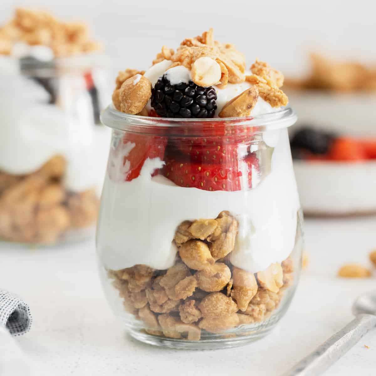 - If you like the “fruit on the bottom” style yogurts, add 1 tablespoon of your favorite berry jam to the bottom of your yogurt parfait.