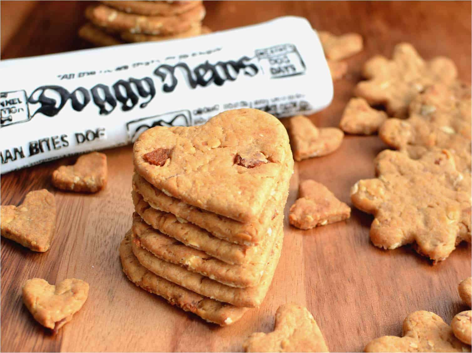 These homemade dog treats are made with peanut butter, oats, and a hint of bacon! These make great gift ideas and are a fun baking activity for adults and kids!