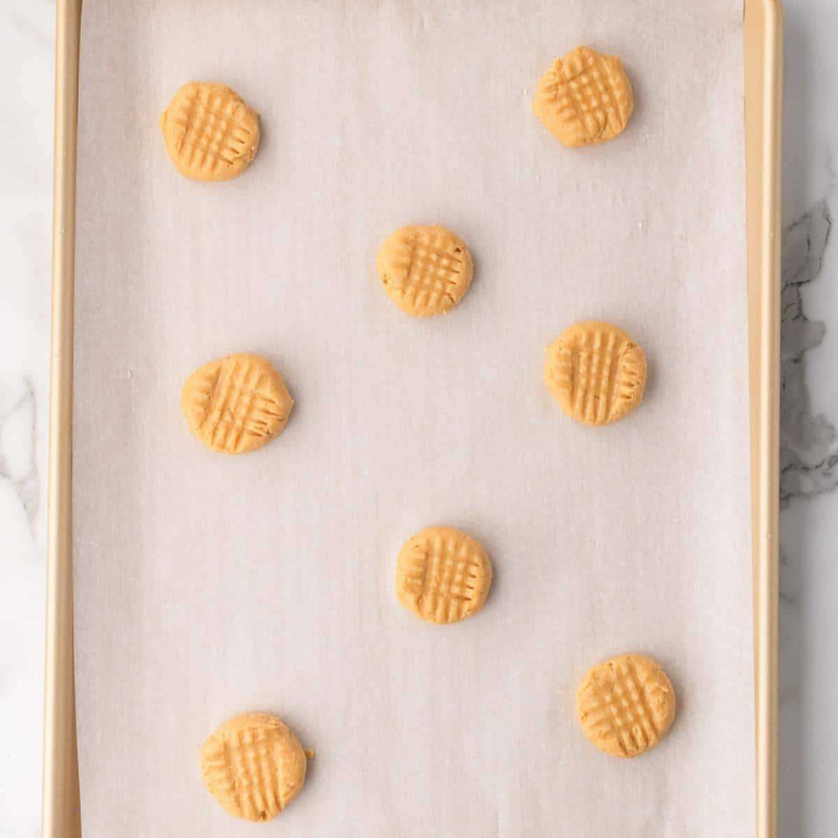- Drop dough by heaping tablespoon onto the prepared baking sheet, press down with a fork if desired