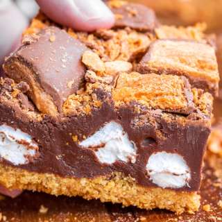 - Melt butter in medium saucepan over high heat. Add in sugar, corn syrup and salt. Bring to a boil, stirring constantly. Boil one minute, remove from heat. Stir in baking soda and vanilla.