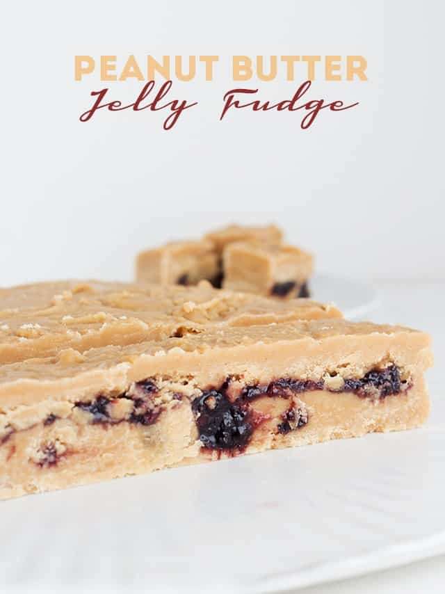 This rich Peanut Butter Jelly Fudge recipe has two layers of peanut butter fudge with pockets of grape jelly in the middle.