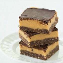 - Make the Topping: Using a double boiler (or a microwave on 50% power), melt the chocolate and butter. Spread over the filling and allow to set at room temperature (or refrigerate to speed up the process) before cutting into bars and serving. Leftovers should be stored in an airtight container at room temperature or in the refrigerator.