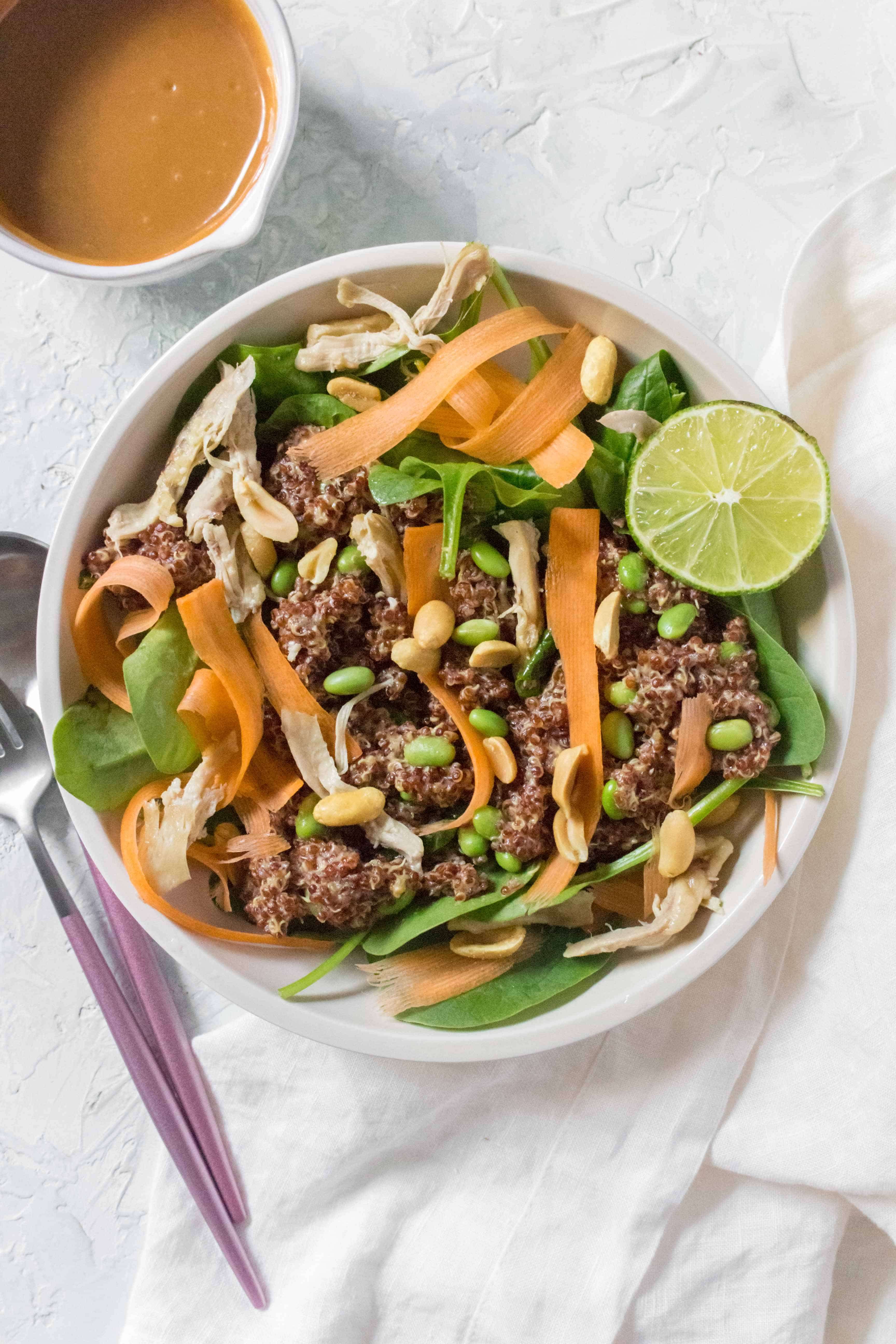 - If making ahead for a party: prepare the peanut sauce up to 3 days in advance and store it in an airtight container in the fridge. The quinoa can also be made the night before and chill in the fridge overnight.