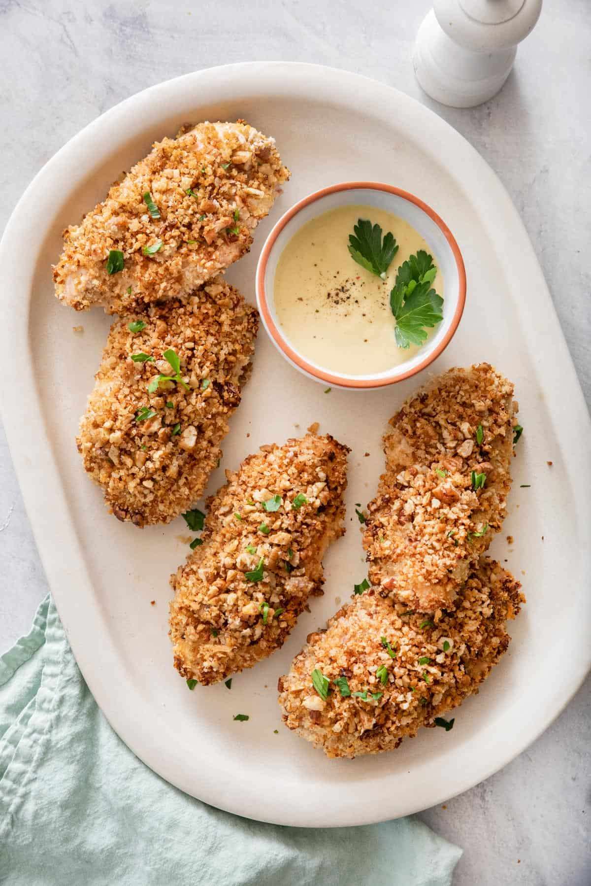 Simple and easy to make, this pecan crusted chicken is full of flavor and crunch. Baked in the oven, it's an effortless weeknight meal to try