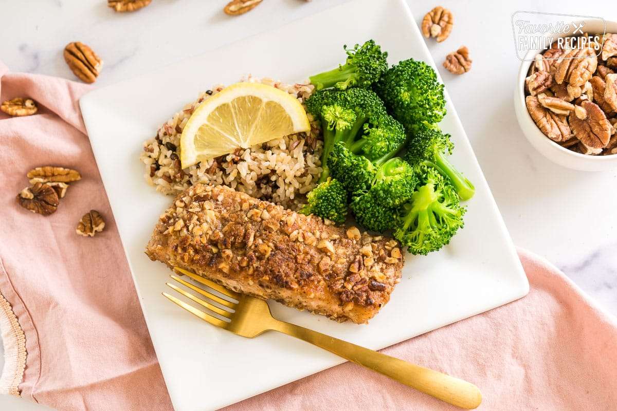 A pecan topping gives this Pecan Crusted Salmon a sweet and savory crust while the fish is tender and flakey. It is a delicious way to prepare baked salmon!