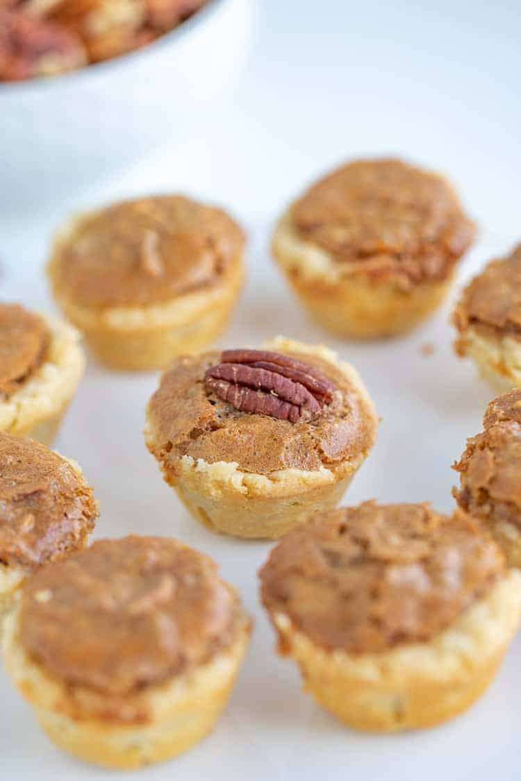These Pecan Tassies are like mini pecan pies with a buttery cream cheese crust and a super simple pecan filling.