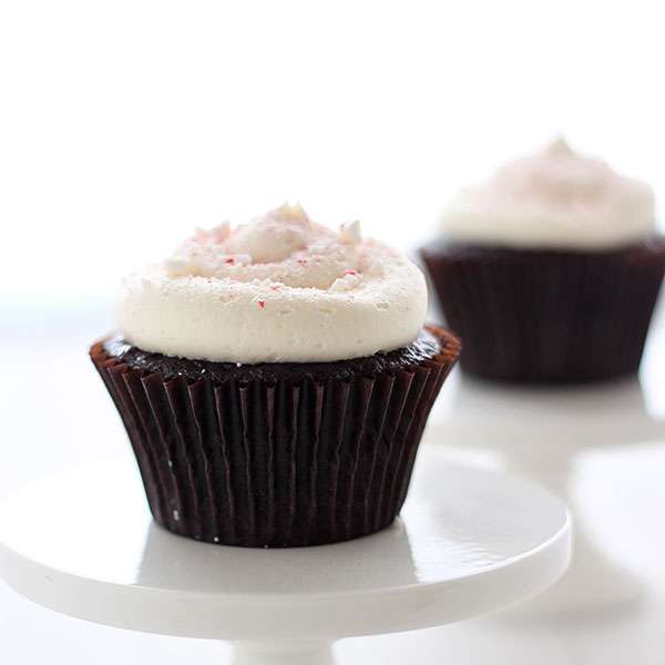 - Scoop the frosting into a large piping bag fitted with a plain open tip, such as the Ateco 804 or 806. Pipe the frosting onto the cooled cupcakes. Sprinkle with crushed candy canes. Serve or store in an airtight container in the fridge for up to five days. Bring to room temperature before serving if desired.