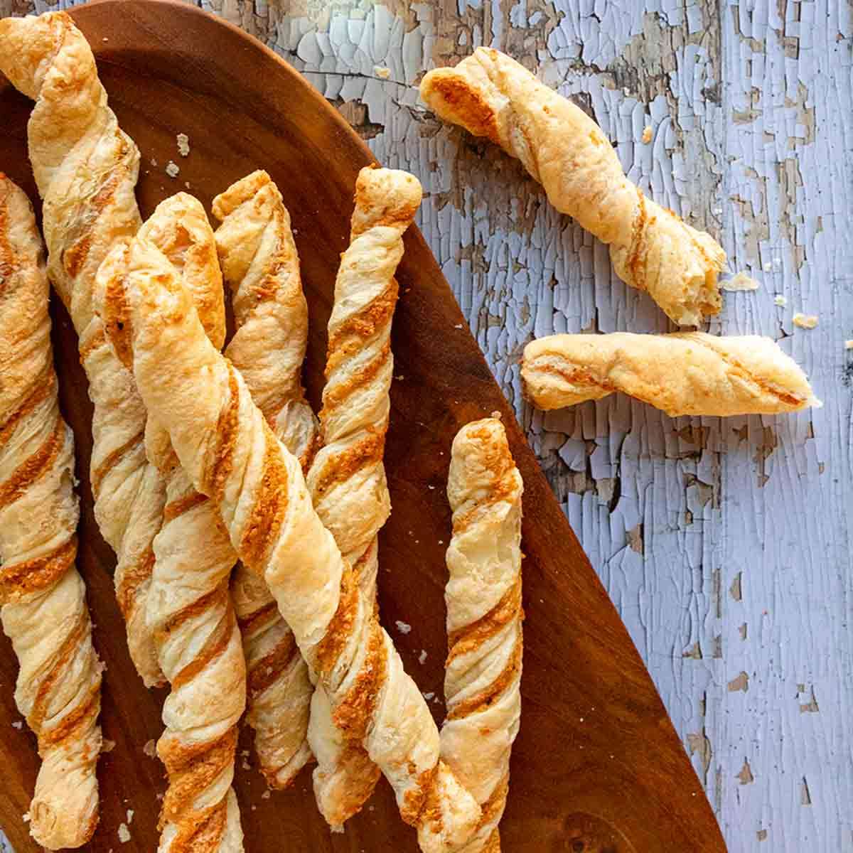 - Make them longer--If you'd prefer longer, thinner puff pastry cheese straws, tug gently on the pastry as you twist it to elongate the dough. The baking time will be slightly shorter.