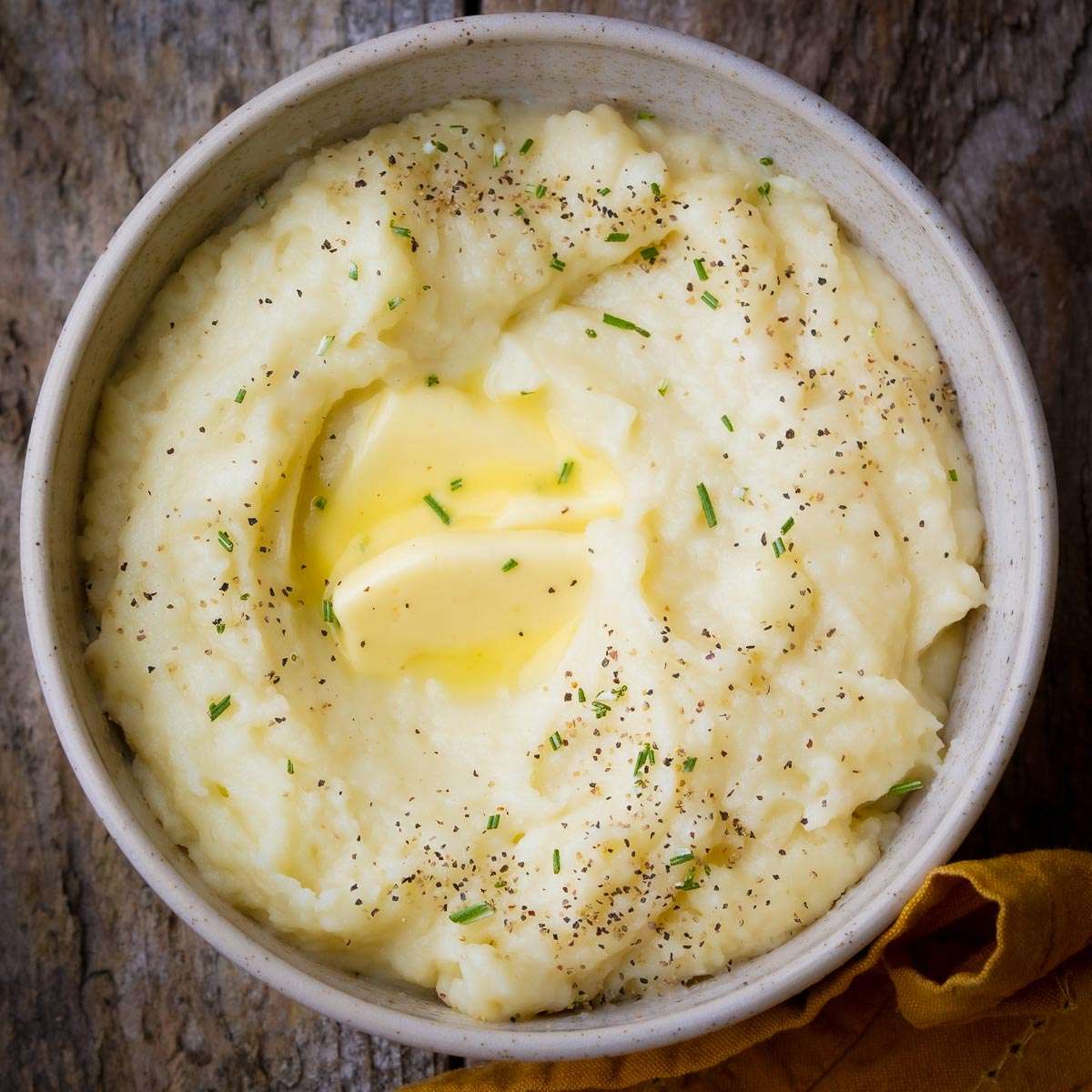 - Transfer the mashed potatoes to an attractive serving dish and garnish if desired with extra vegan butter, herbs, coarsely ground black pepper, and chives.