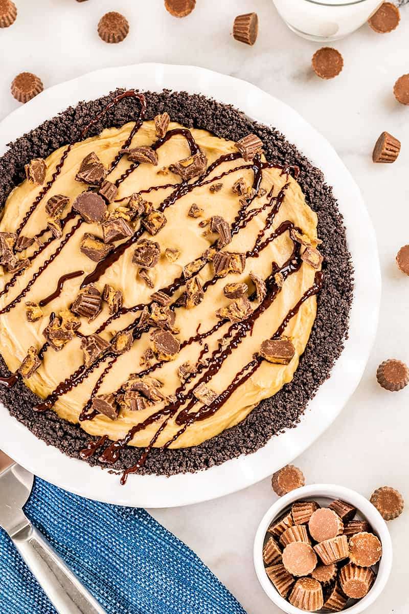 Creamy peanut butter whipped filling meets a homemade Oreo crust in this easy Peanut Butter Pie. Maximum peanut butter flavor with an extra hidden layer of peanut butter magic.