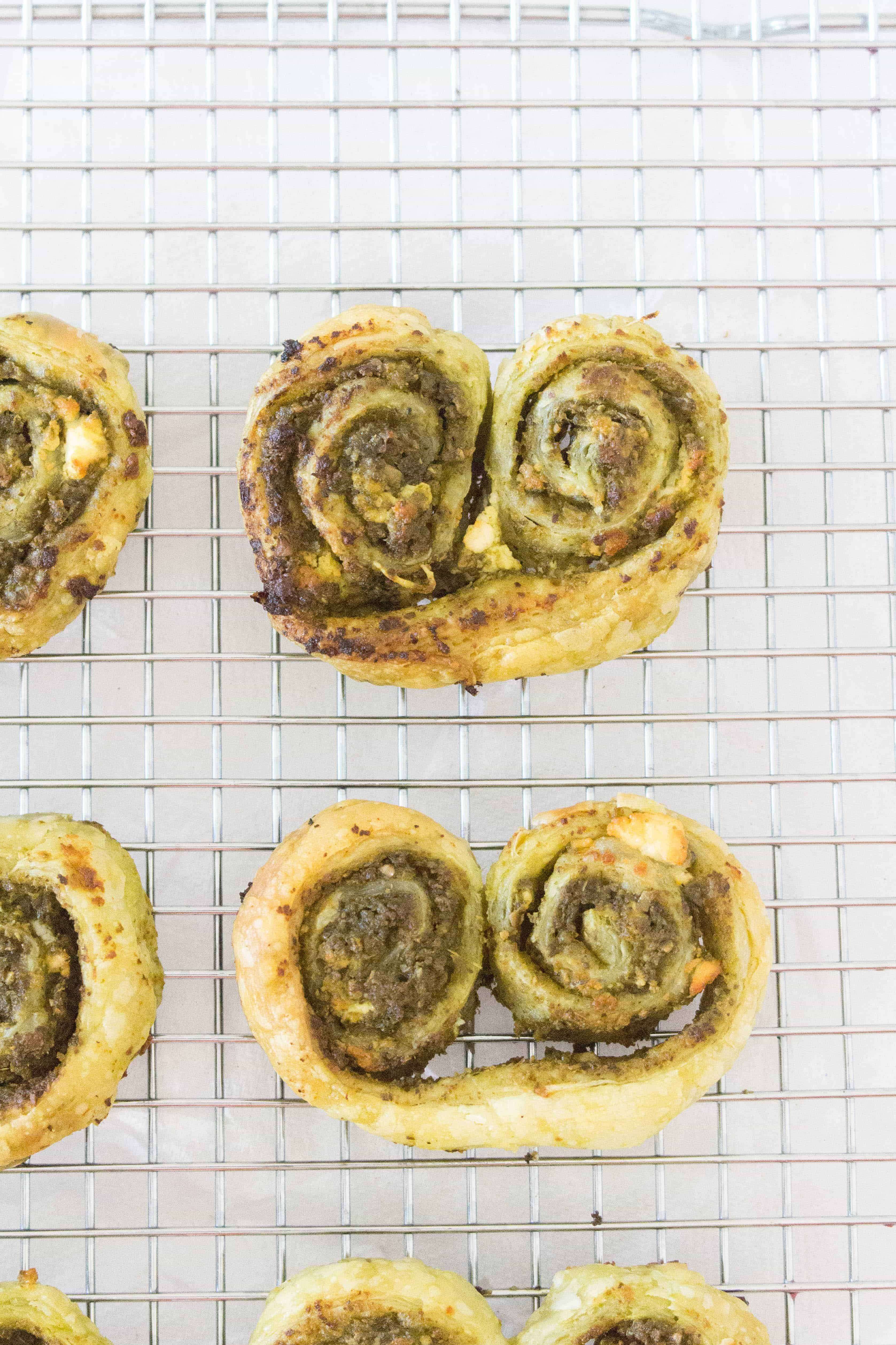 A delicious pesto and goat cheese savoury palmier to satisfy both a savoury and pastry craving!