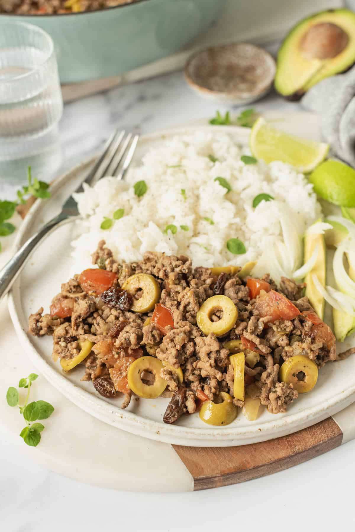 - Stir in tomatoes, olives, raisins, capers, cumin, oregano, salt, and pepper. Add water or broth and bring to a simmer.