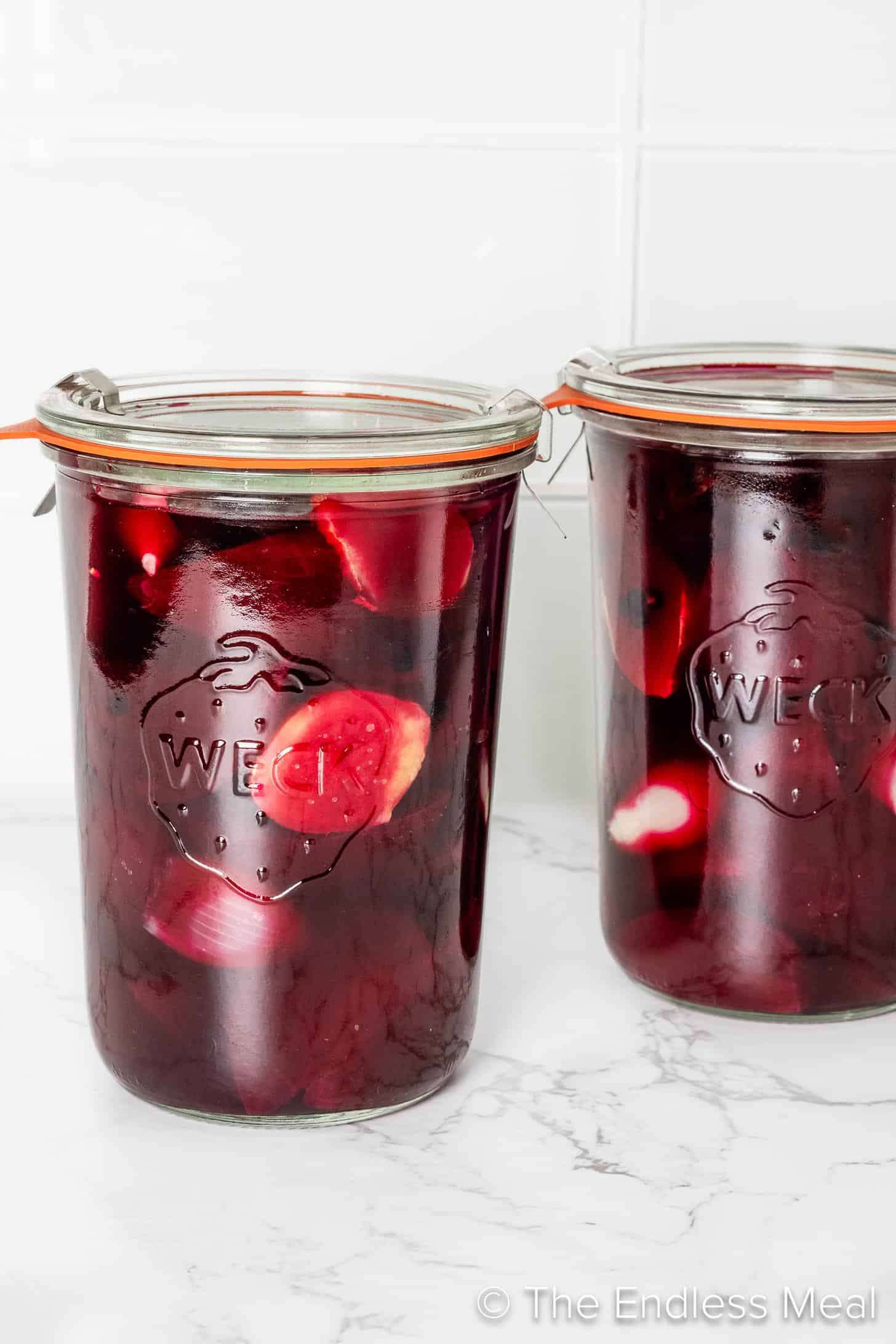 Tis the season to pickle and jar the summer's garden bounty. These pickled beets and onions are both sweet and tangy; there's nothing better than reaching for homemade pickled veg to brighten up your favorite salad, sandwich, or charcuterie board.