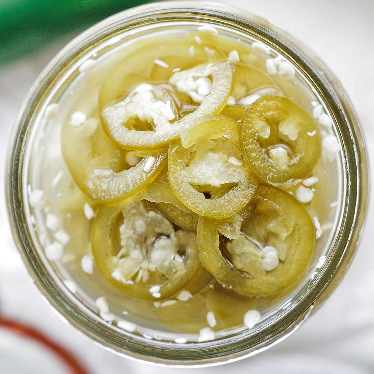 - Transfer the pickled jalapeños to a sterilized jar and screw on the lid fingertip tight.