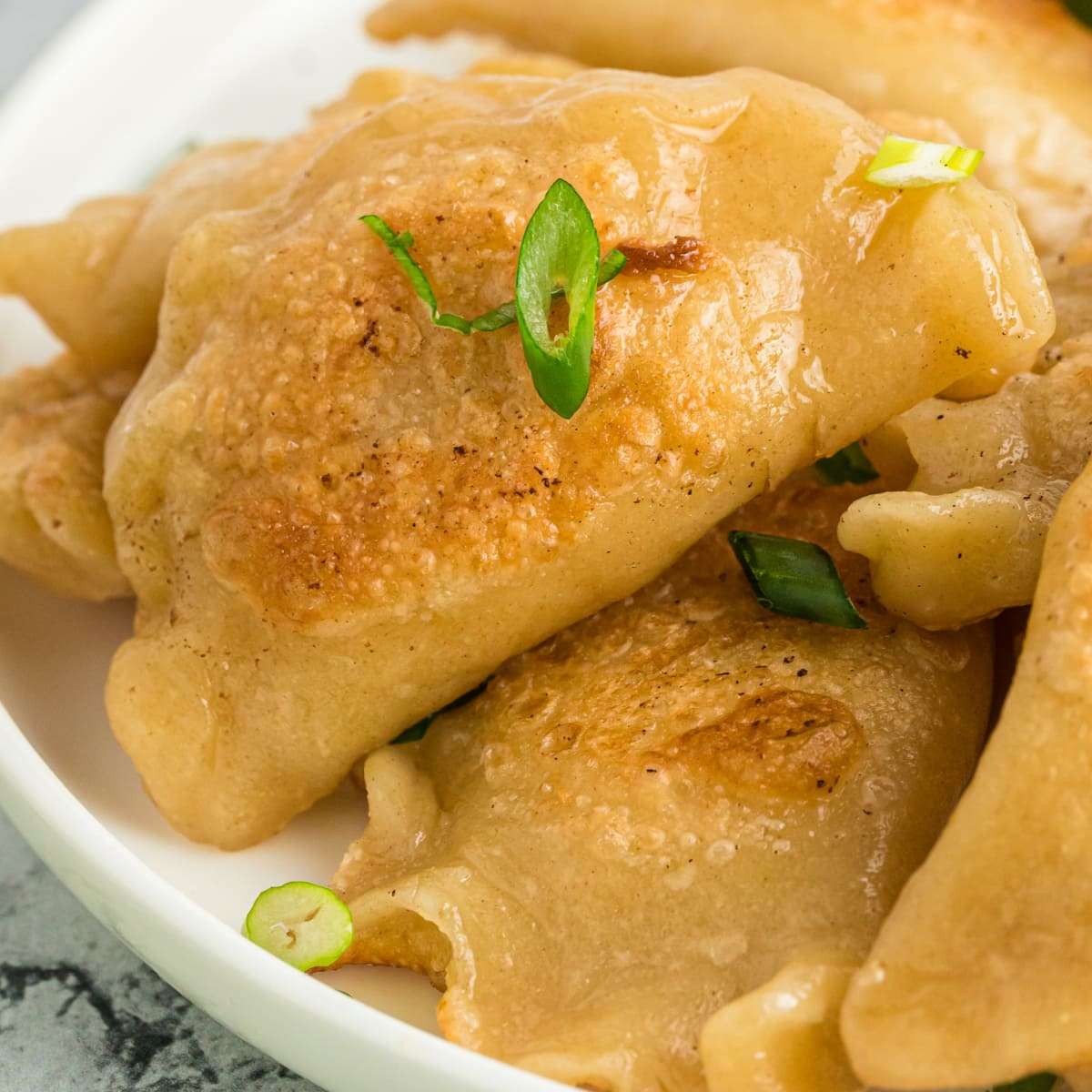These Homemade Pierogi are filled with creamy mashed potatoes and cheese. Boil then pan fry and serve with butter, sour cream, and green onions for an irresistible side dish.