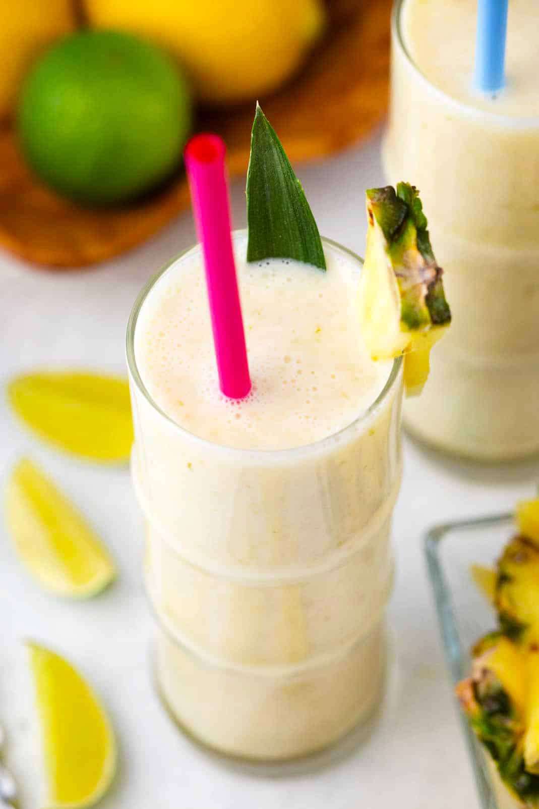 Pineapple Smoothie is sweet, creamy, and full of fresh tropical flavors. Made with juicy pineapple chunks, juice, banana, and Greek yogurt.