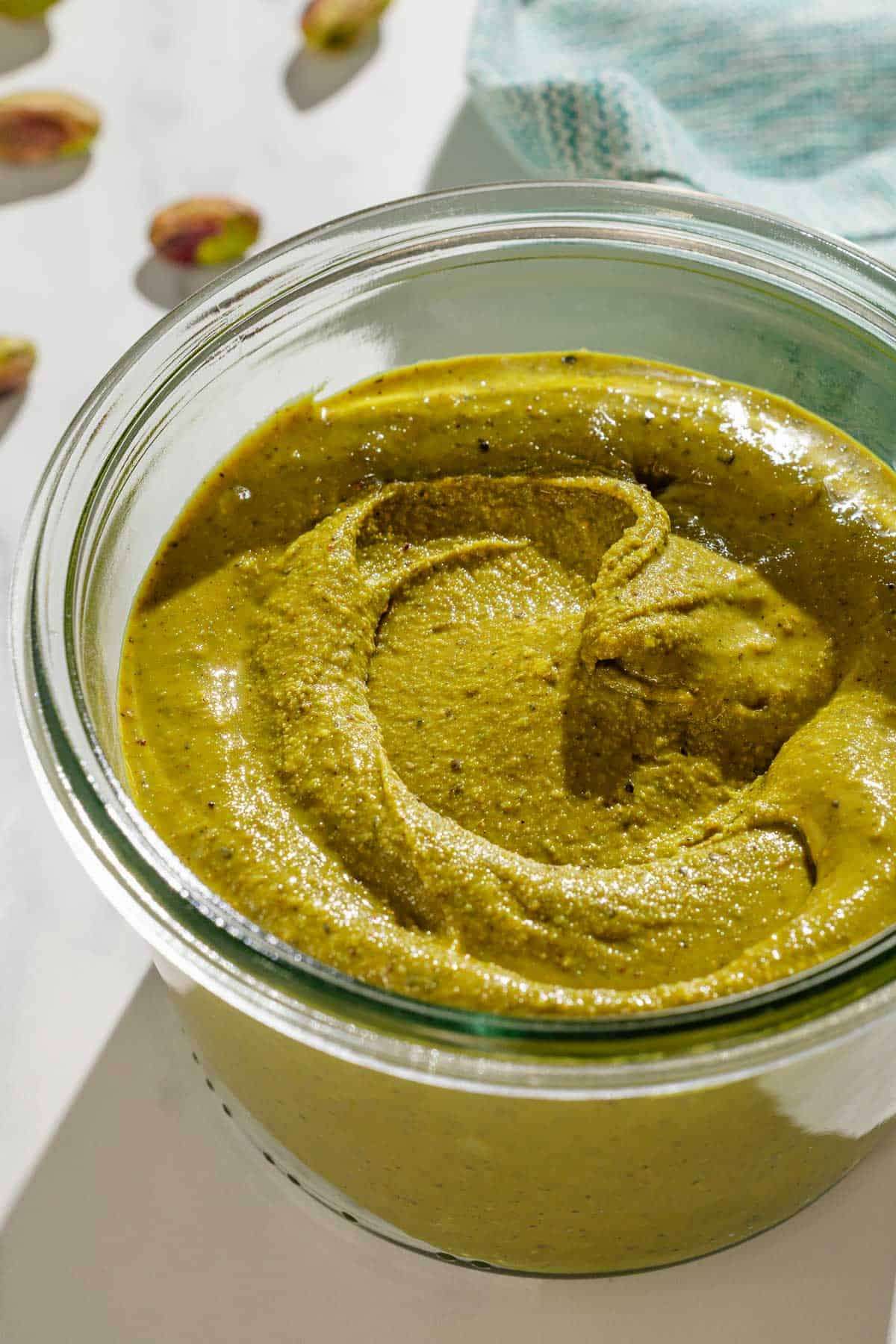 - Store. Let the pistachio butter cool to room temperature before transferring to a sealable container. Store at room temperature for up to 1 week or in the fridge for up to 4 weeks.