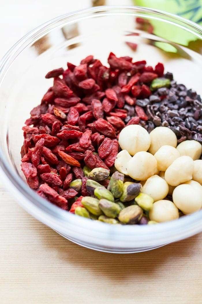 - Chop macadamia nuts if needed. Combine all ingredients a small bowl and enjoy!