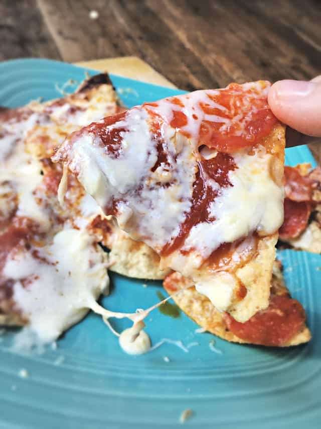 - Use a crisp, light chip (the inexpensive Santitoes work well, or you choose!). A pizza sauce straight out of the jar is fine. Feel free to make your own as well. Add other toppings you like on pizza such as hamburger, sausage, vegetables, olives…. Get creative! It’s important to use a saucy already melted cheese PLUS shredded cheese. The sauce cheese is a wonderful surprise and what tastes SO GOOOD! The shredded cheese gives these a good bite plus helps hold the goodies onto the chips, so use it too! Use any flavorful, hearty cheese that you enjoy and that melts well under the broiler.