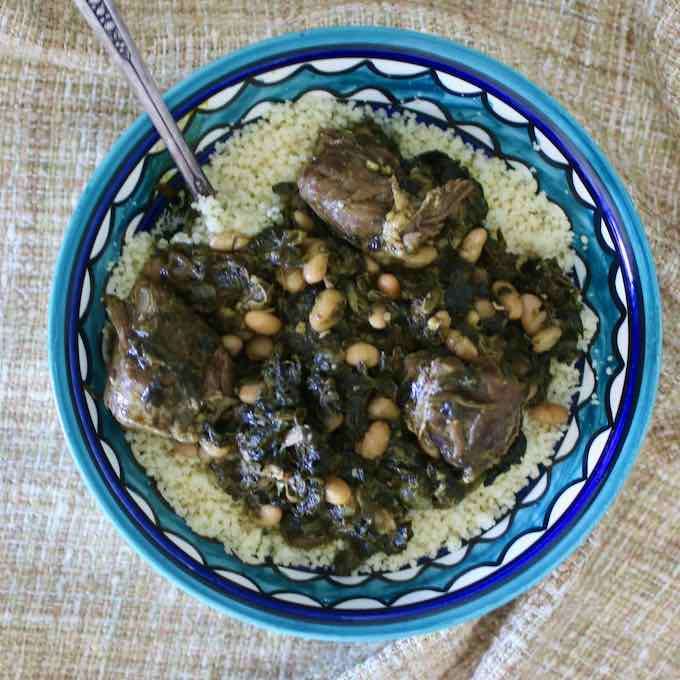 - Drainer les épinards pour en dégager l’huile. Dans un faitout, faire revenir l’ail, l’oignon, la harissa, le pied de bœuf (ou veau) et la viande quelques minutes. Ajouter ensuite les haricots, les épinards, puis saler, poivrer et couvrir d’eau.