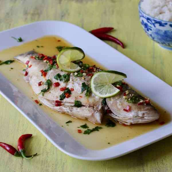 Pla Kapong Neung Manao (ปลา กะพง นึ่ง มะนาว)