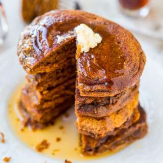 Soft and Fluffy Gingerbread Pancakes with Ginger Molasses Maple Syrup