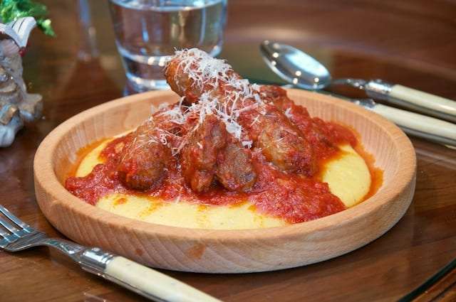 Polenta con salsicce e spuntature (Polenta with Sausages and Spareribs)