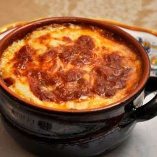 - Sauté onion and, if you like, a bit of garlic sautéed gently in olive oil or (better) lard until soft and translucent.