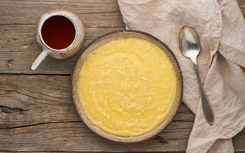 - Pour the milk into the polenta mixture and lightly stir to combine, then add the cheese and butter - continue stirring until it has all melted together.