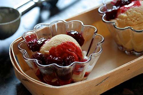 The distinctive earthy flavor was a good match for some quick-candied cherries I had on hand. When fresh apricots come into season, I’m thinking of roasting some with brown sugar and Marsala to serve alongside. Poached pears or dried apricots would be welcome alongside a scoop of this, too.