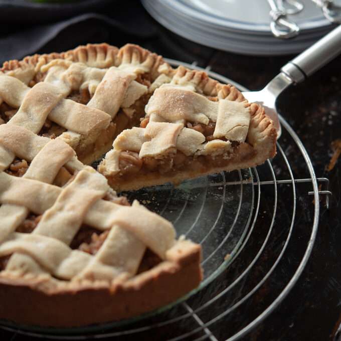 This Polish apple pie (szarlotka) is filled with fragrant apple filling and topped with a cookie-like dough pie crust that's woven into a lattice.