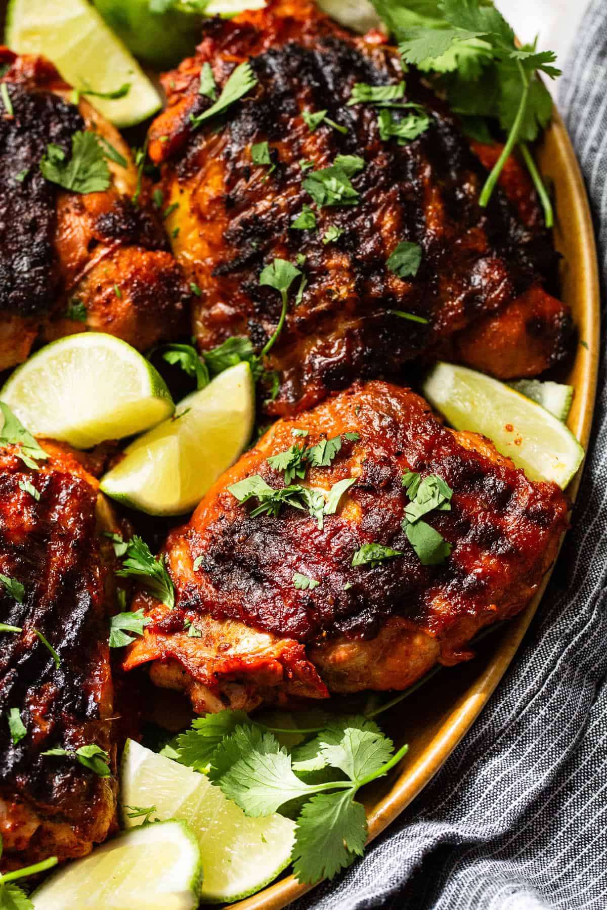 - Marinating: I recommend marinating the chicken for at least 4 hours but no longer than 8 hours. If marinated too long, the citrus juices start to break down the chicken too much and can give it a mushy texture.