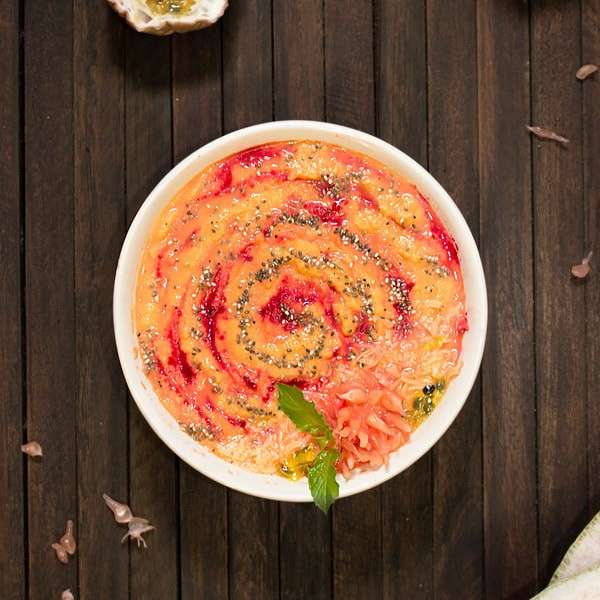 The pomelo smoothie makes a great vegan & gluten-free breakfast smoothie bowl.