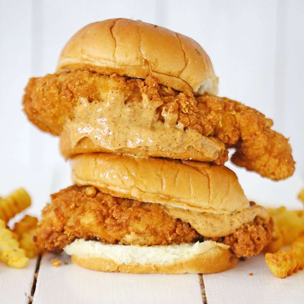 This copycat Popeyes Chicken Sandwich Recipe is so easy to make at home. Crispy and juicy fried chicken served on a brioche bun, then topped with spicy mayo and pickles.