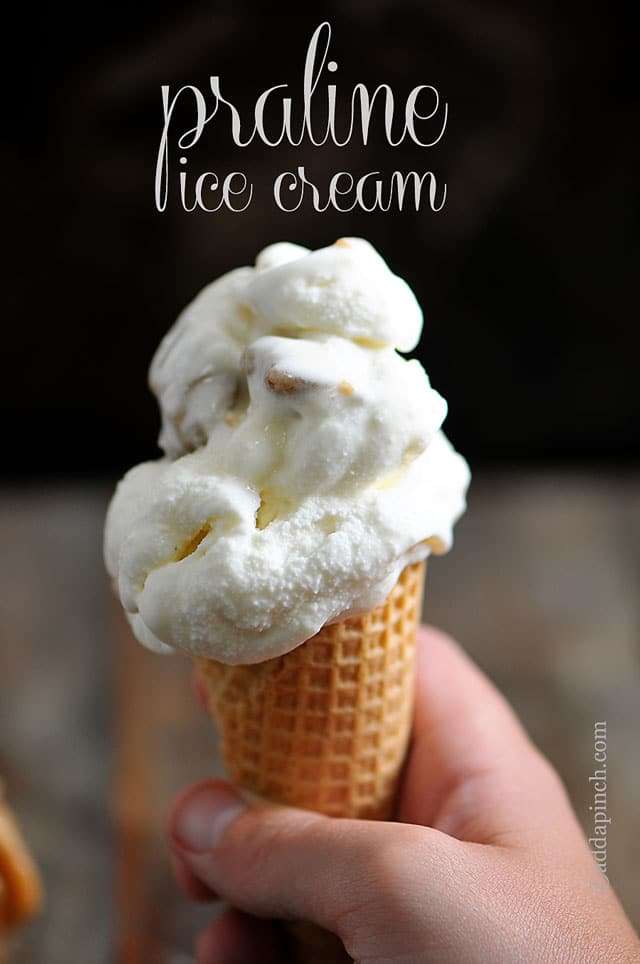 - Roughly chop Southern Pralines and add into ice cream maker container when ice cream is almost ready. Alternately, you can simply mix praline pieces into the ice cream once it has been made.