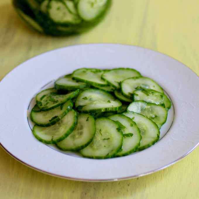 La pressgurka es una ensalada tradicional sueca que se prepara con pepino con sal, prensado y marinado con azúcar y vinagre.