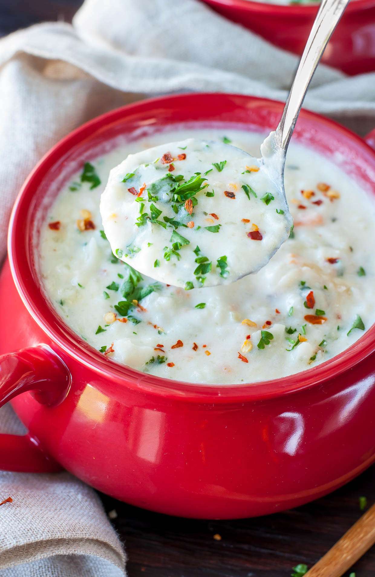 - Every so often I'll go extra creamy with my soup and swirl a little cream cheese into the mix too. I do this with cauliflower and potato based soups and totally adore the result! Feel free to follow suit if you're a cheese fiend like myself! I'll usually use a lighter dairy option (regular milk vs cream for instance) and then add a few oz of cream cheese in after it's done cooking in the IP.