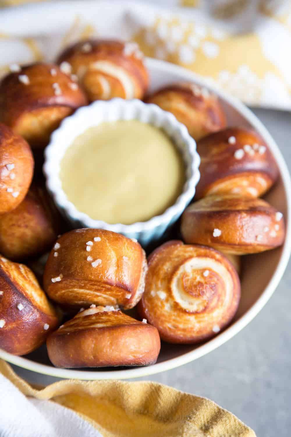 Pretzel Bites are the perfect afterschool snacks, game day appetizers, and popcorn replacement for movie nights. The outside of each pretzel bites is golden brown and chewy, while the inside is soft and fluffy.