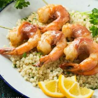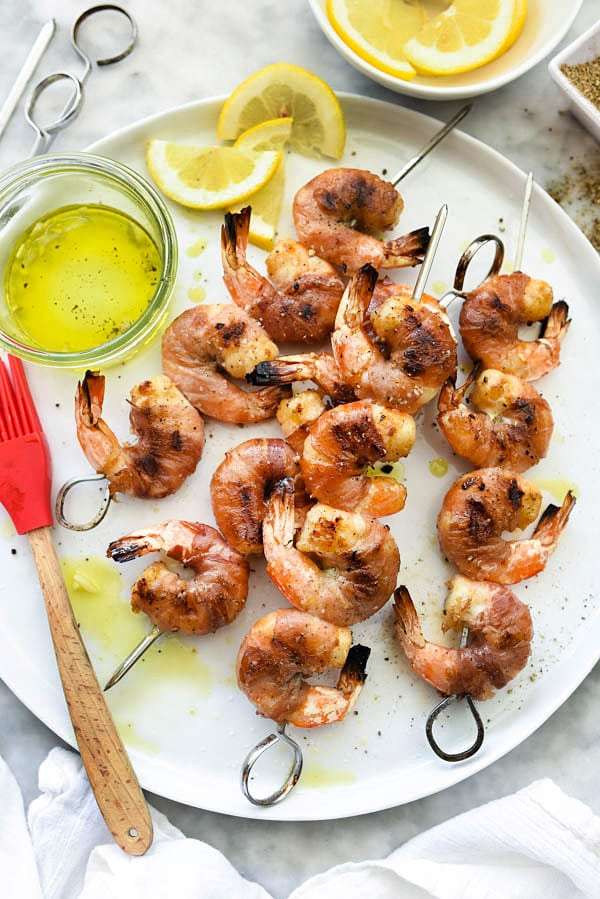 Grilled shrimp get an extra boost of flavor from a super simple garlic marinade and a wrap of Italian prosciutto. This is super simple dinner or appetizer when there's no time to cook.